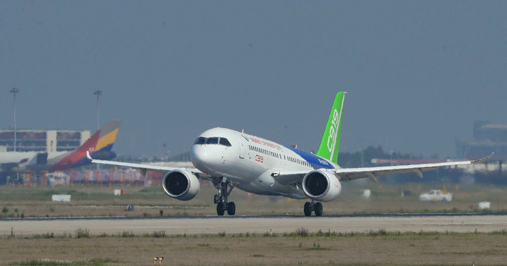 我國具有完全自主知識產(chǎn)權(quán)的新一代大型噴氣式客機C919首飛成功