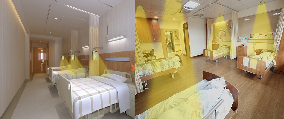 醫(yī)院病房多人間,病人在康復(fù)療養(yǎng)時(shí),一般看電視聽廣播的時(shí)候,聲音過大會干擾到隔壁病床的病友休息,通過繼承清聽聲學(xué)定向音箱聚音寶定向聲,讓電視劇的聲音只傳播到某個床位,隔壁床位聽不到聲音或者聲音非常微弱,不影響其他病友正常休息。